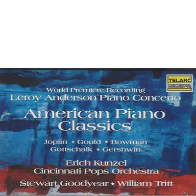 The centerpiece of this remarkable album is the first-ever recording of Leroy Anderson’s Concerto for Piano and Orchestra in C major. After the premiere and several performances of the work by pianist Eugene List under the direction of the composer in July 1953, Anderson withdrew the work and made no further revisions. Maestro Kunzel and the late William Tritt reintroduced the work in November 1989. The Concerto is here performed by the remarkable 14-year-old Canadian pianist Stewart Goodyear. Mr. Goodyear makes his Telarc debut with this recording, one that also includes his performance of the original version of George Gershwin’s Second Rhapsody (1931).