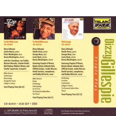 The third issue of Telarc's popular Triple Play series presents the final recordings made live at the Blue Note by Dizzy Gillespie and a star-studded lineup of guests. Includes three previously-released albums, specially packaged and priced.