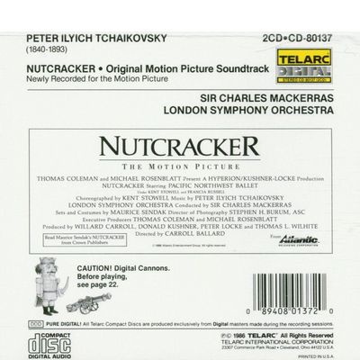 Despite all this, there are problems with this performance. These are perhaps due to the fact that Mackerras was not completely in charge of shaping the music, the tempos having been preset by choreographer and dancers. The movie has in places a disconcerting speeded-up quality. Although this is less marked in the recording, there are a number of tempo choices about which one could legitimately ask, “What's the hurry?“ As a result of this haste, there is occasional loss of detail, blurring of accompanying figures, and a couple of woodwind solos which are a bit of a scramble. To be honest, I observed this mainly in the early pages of the score; by the entrance of Drosselmeyer, there was marked improvement.