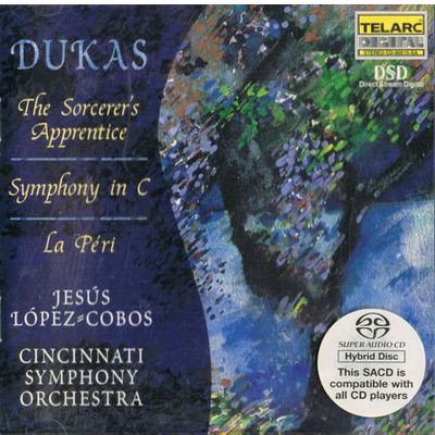 The third work on this recording, La Péri (The Fairy), with its attendant Fanfare, was the last work by Dukas to be published. A single-movement “poeme dansé,” was commissioned by Natalia Trouhanova, a Russian ballerina, who gave the premiere performance in Paris in 1912. Its underlying story is taken from Persian mythology, and concerns a youth, Iskender, who is searching for the lotus, the flower of immortality. In his searching, he finds a sleeping péri in a bower, who possesses a lotus. Iskender steals the lotus but, having fallen in love with the beautiful péri, cannot flee. She awakens and dances, inflaming the youth’s desire, and he returns the flower only to lose both the lovely girl and the lotus, as the péri fades away into the sunset.