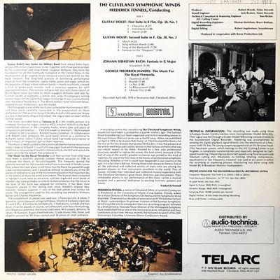 Recorded at Severance Hall in April 1978, the Cleveland Symphonic Winds bring the brilliance of 18th century composers Holst, Handel, and Bach to the 20th century. They coax 200-year-old ideas off the pages of music using a well-balanced combination of dexterity and lung capacity. The sounds produced by the air that resonates through the instruments of the Cleveland Symphonic Winds are simply breathtaking.